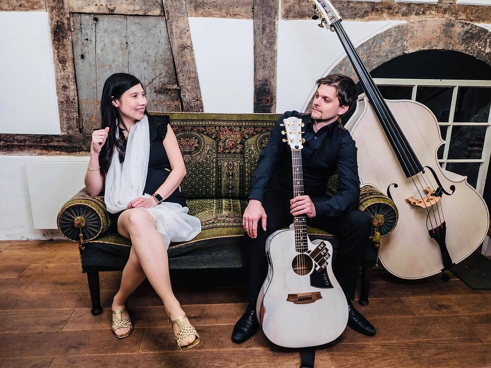 Begleitet wird sie von ihrem Duo-Partner Steffen, einem virtuosen Gitarristen, mit dem sie die