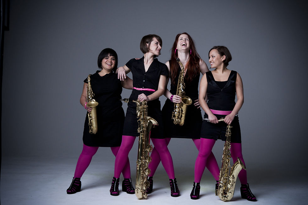 Famdüsax – vier Saxofonistinnen, die Bigband-Feeling in kompakter Form liefern. Michelle Labonte, Yolanda Diefenbach, Julia Zinn und Hanna Kraus arrangieren Klassiker von Swing bis Ed Sheeran so clever und mitreißend, dass aus vier Saxophonen ein voller, lebendiger Sound entsteht.