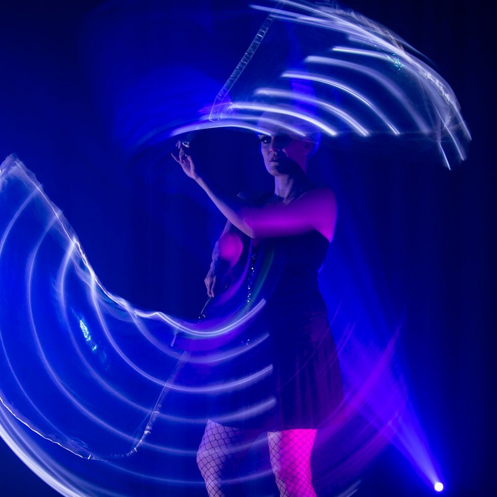 Heiß begehrt bei Firmen-Events ist die futuristische und tänzerische LED-LICHTSHOW „DELiGHTFUL“. Inszeniert wird die hochkarätige Tanzshow komplett mit einem aufwendigen und eindrucksvollen Lichtdesign, welches eigens dafür entwickelt wurde – es scheint, als steuere Sabrina die Lichteffekte allein mittels ihrer Bewegungen.
