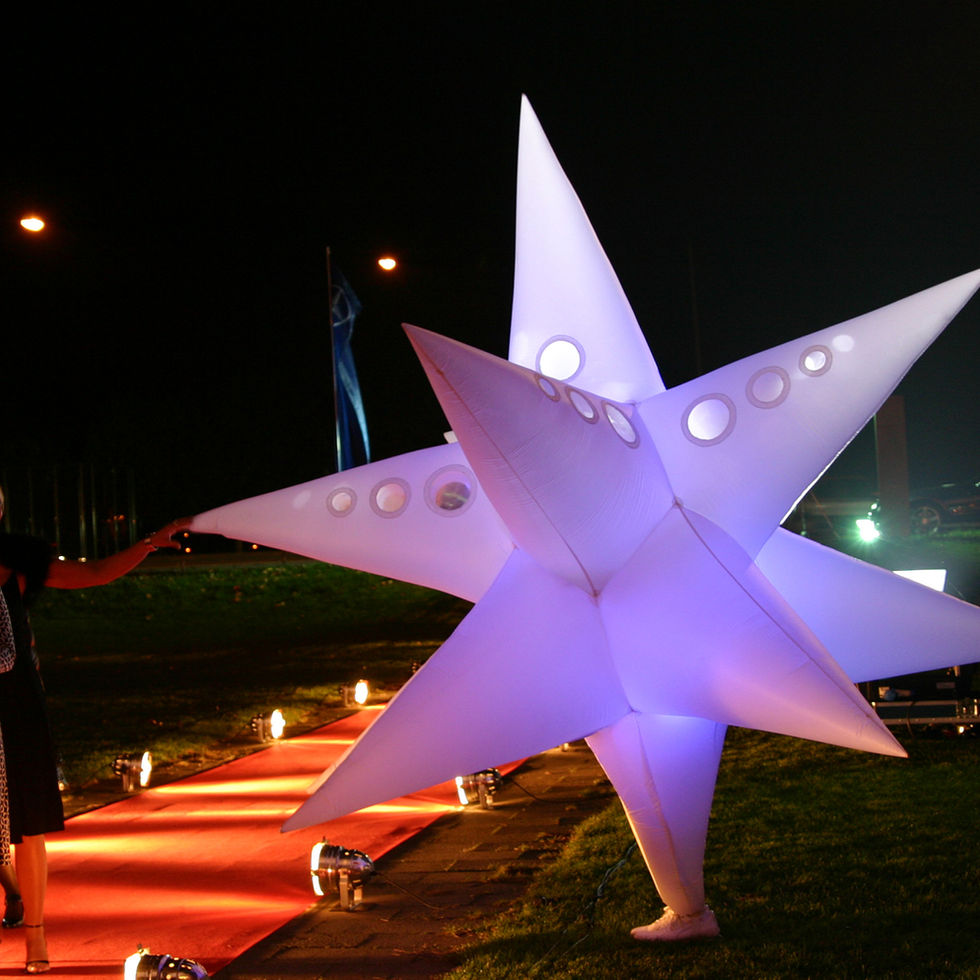 Besonders gefragt sind die leuchtenden LED-Sterne aus der Produktion „Sternenglück“, die bei Einbruch der Dunkelheit in wechselnden Farben über den Köpfen des Publikums schweben und eine magische Atmosphäre schaffen – ideal für Lichterfeste, Abendveranstaltungen oder Winterevents. Ein weiterer Publikumsliebling ist die „Zwergenparade“: neugierige, freche Gartenzwerge auf Pflanzenstelzen, die plötzlich mitten im Publikum auftauchen und mit Humor und Charme für überraschende Begegnungen sorgen.